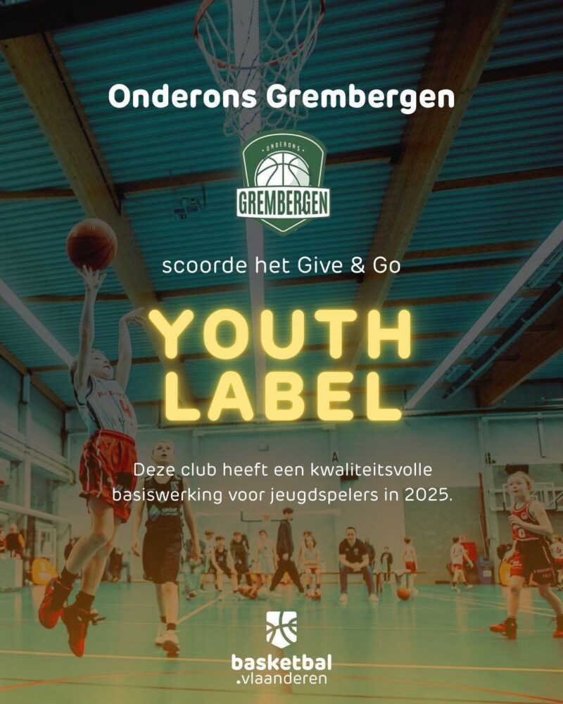 Onze Basketbalclub scoorde het Give & Go YOUTH LABEL van Basketbal Vlaanderen.
